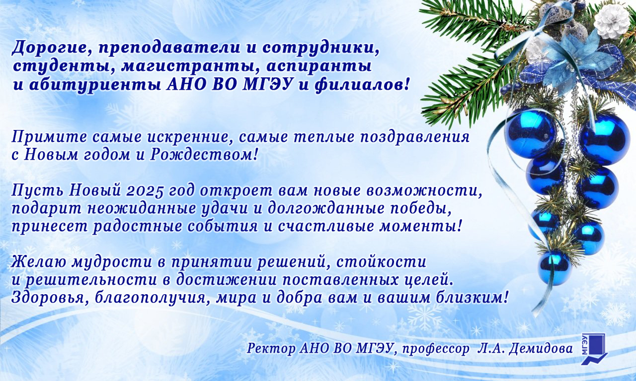 Поздравление ректора, профессора АНО ВО МГЭУ Демидовой Л.А. с Новым 2025 годом и Рождеством
