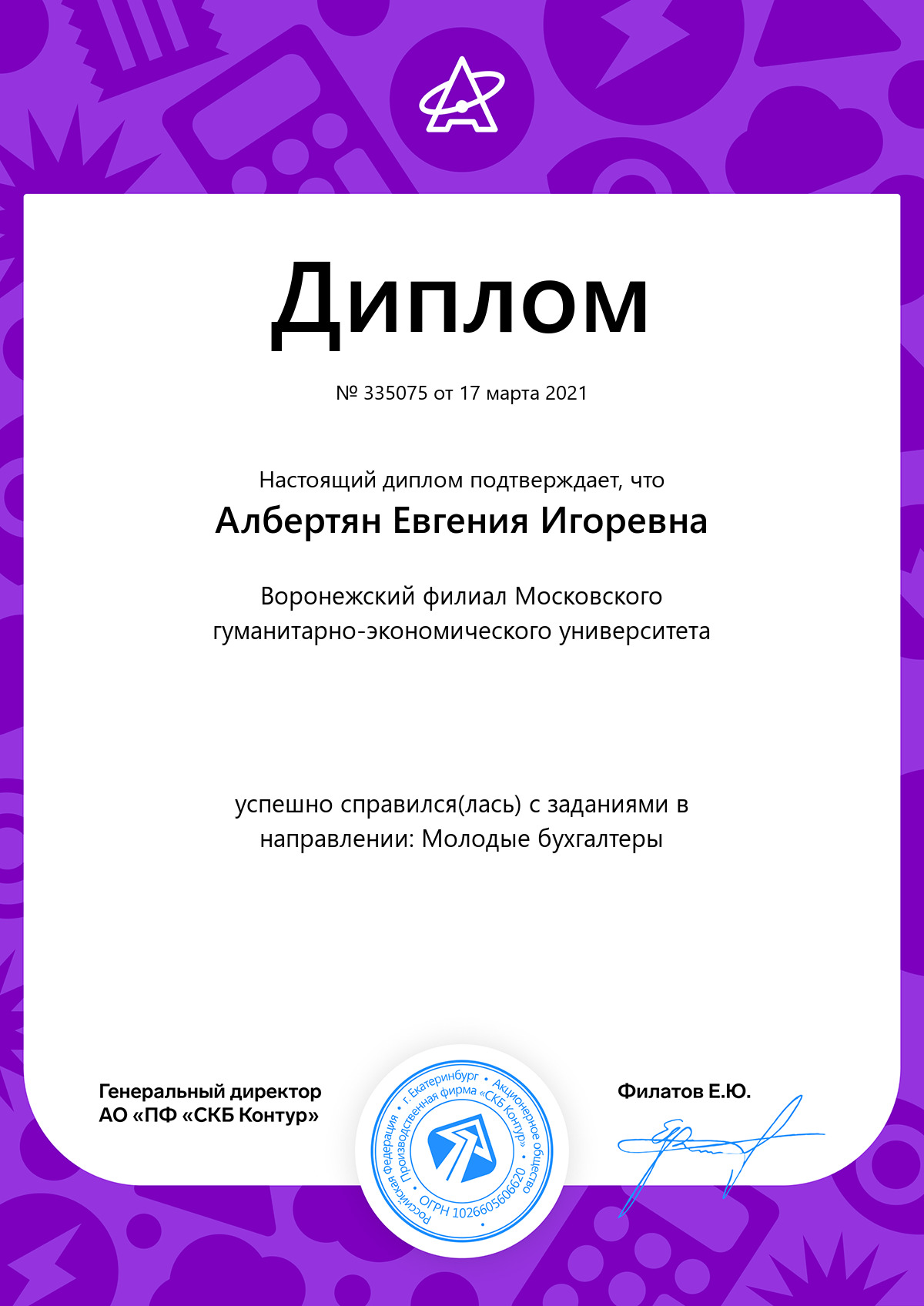Студенты-бухгалтеры 3 курса Воронежского института (филиала) МГЭУ приняли онлайн-участие во Всероссийском студенческом конкурсе «Контур.Старт», проводимом в г. Екатеринбурге.