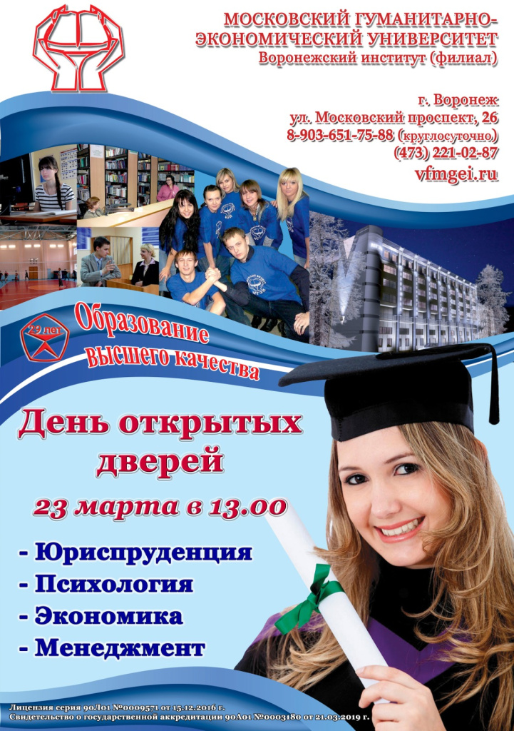 Воронежский институт (филиал) АНО ВО МГЭУ 23 марта в 13.00 проводит День открытых дверей по адресу Воронеж, Московский проспект, д.26!В программе: