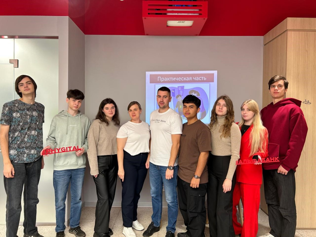 Студенты первого курса направления подготовки Экономика, профиль "Финансы и кредит" с куратором С.А. Ледянкиным посетили занятия по финансовой грамотности и профориентации со специалистами "Альфа-Банка"Фото: Загрузить